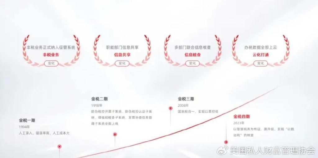 我国近年来的税收数字化建设发展历程中,历经了金税一期至金税四期四个阶段。