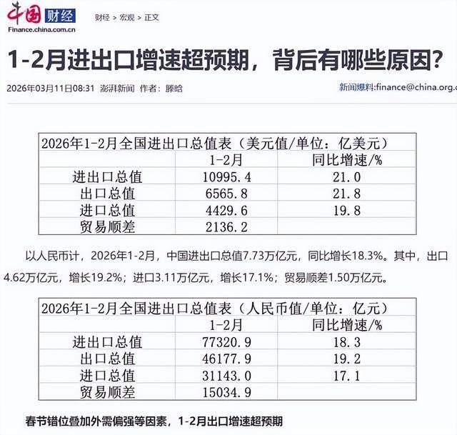3月初这组由海关总署公布的外贸数据,直接让所有市场观察者亮眼:进出口总值同比增长21%。
