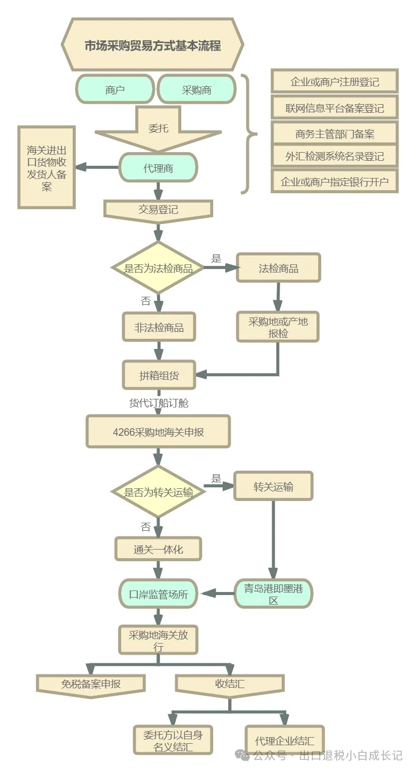 1.市场采购贸易方式出口货物,是指市场经营户自营或委托市场采购贸易经营者,按照海关总署规定的市场采购贸易监管办法办理通关手续,并纳入涵盖市场采购贸易各方经营主体和贸易全流程的市场采购贸易综合管理系统管理的货物(国家规定不适用市场采购贸易方式出口的商品除外)。