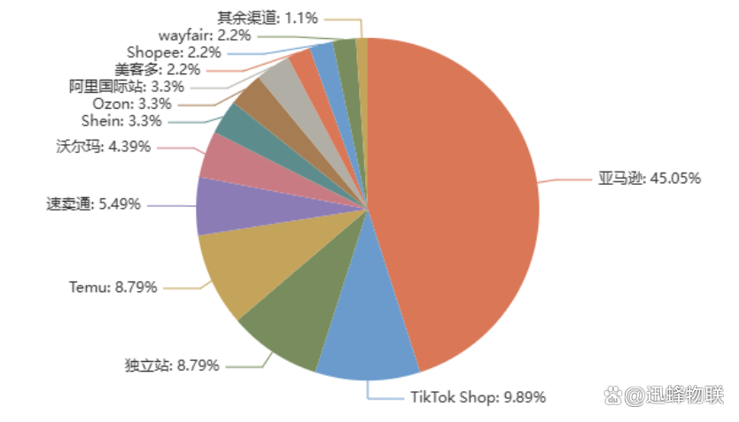 最新调研显示,亚马逊仍以45%的占比稳居第一,其深厚的用户基础、成熟的FBA体系与平台信誉,构筑起依然坚固的护城河,持续担当大多数卖家出海的核心渠道。